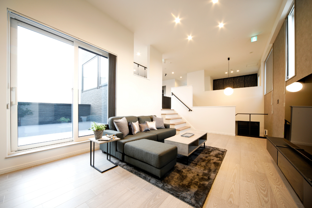 スキップフロアの大空間リビング