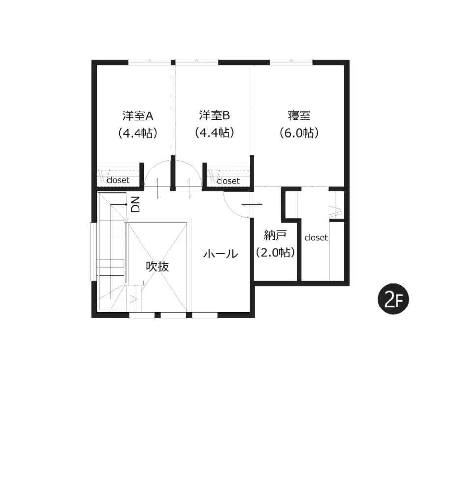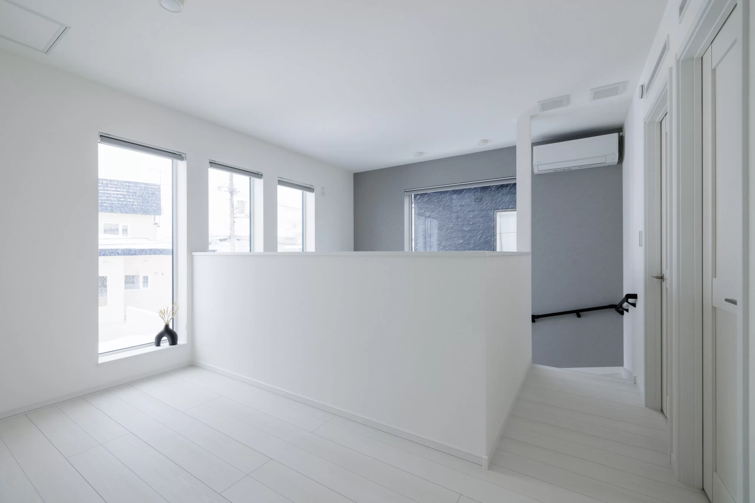 2階の洋室はあえて仕切りを設けず、広々とした空間に。お子さまが小さいうちはのびのび使え、成長に合わせて間仕切りを設ければ個室としても活用可能。ライフスタイルの変化に柔軟に対応でき、長く快適に暮らせる間取りです。