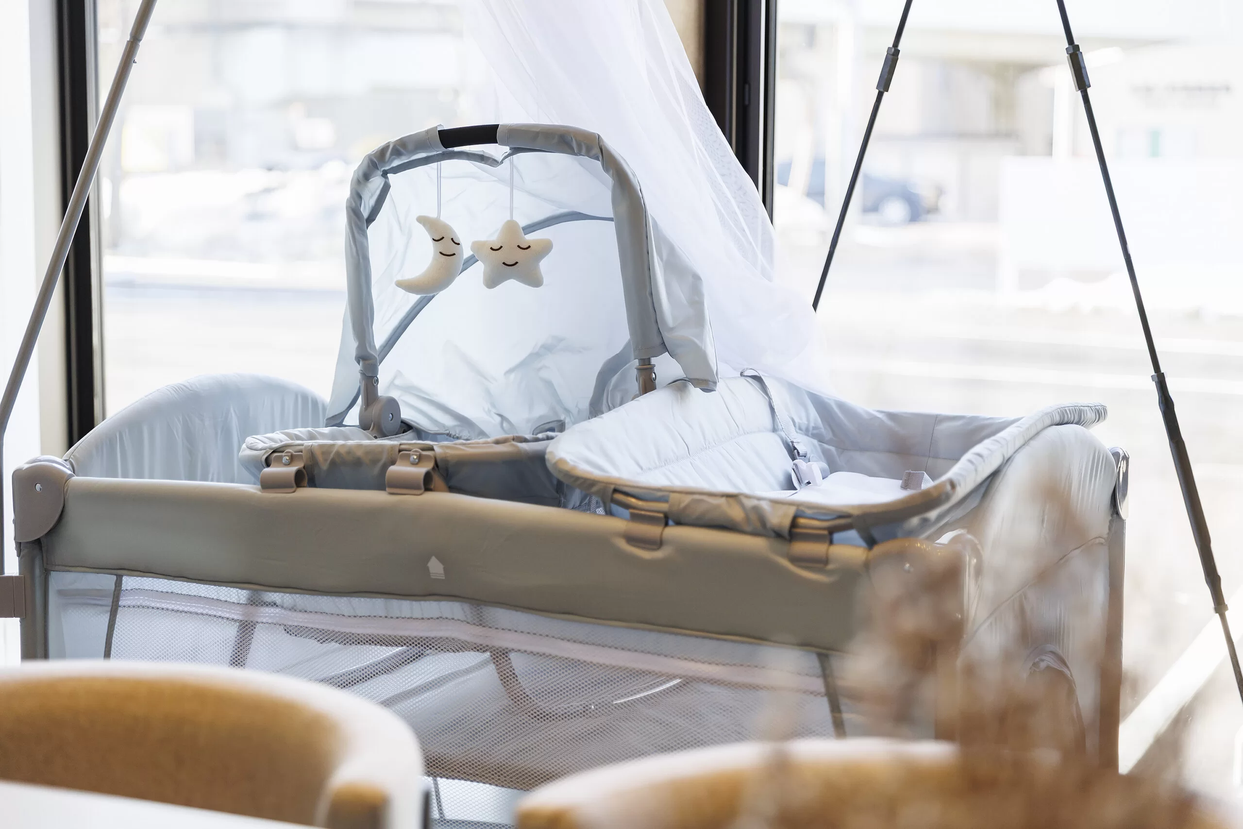キッズパークでは「ベビーエリア」と「キッズエリア」でスペースを分け、小さなお子様も、大きなお子様も、のびのび遊べるよう配慮しました。遊び疲れたら、絵本を楽しめる静かなエリアやベビーベッドもご用意しています。
