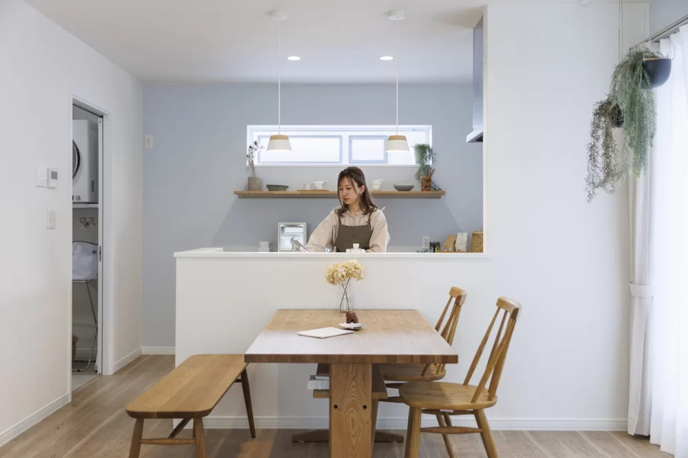 家事をしながらお部屋全体を見渡せる対面式のキッチンは、リビング横の続き間で遊ぶお子様の様子も見守れる安心設計。家族と会話をしながら、楽しく料理ができます。