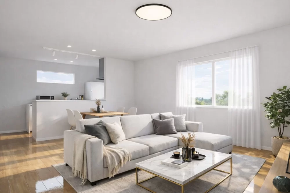 2階リビング最大のメリットは、視線を気にせずに過ごせるプライバシーの高さ。昼はカーテンを開けたままたっぷり自然光を取り込むことができ、リラックスして団らんの時間を楽しむことができます。