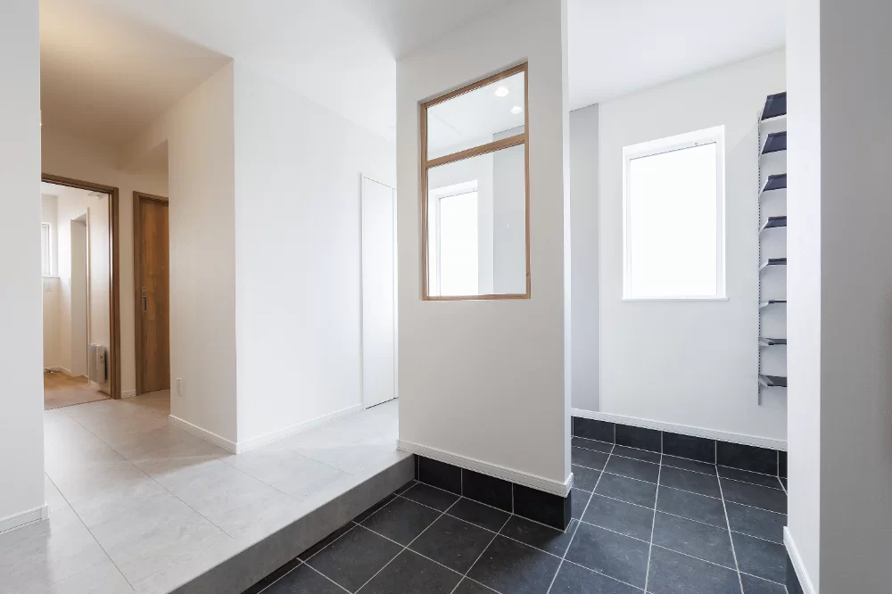 玄関横の大容量のシューズクロークは、玄関とホールの2Way動線で出入りもスムーズ。靴はもちろん趣味の道具や季節用品も収納しやすく、毎日の出入りが快適です。