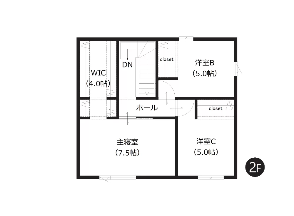 主寝室には、4帖の大容量ウォークインクローゼットを完備。衣類はもちろん、季節のアイテムもすっきり収納でき、整理整頓しやすく、いつでもすっきりとした空間を保てます。