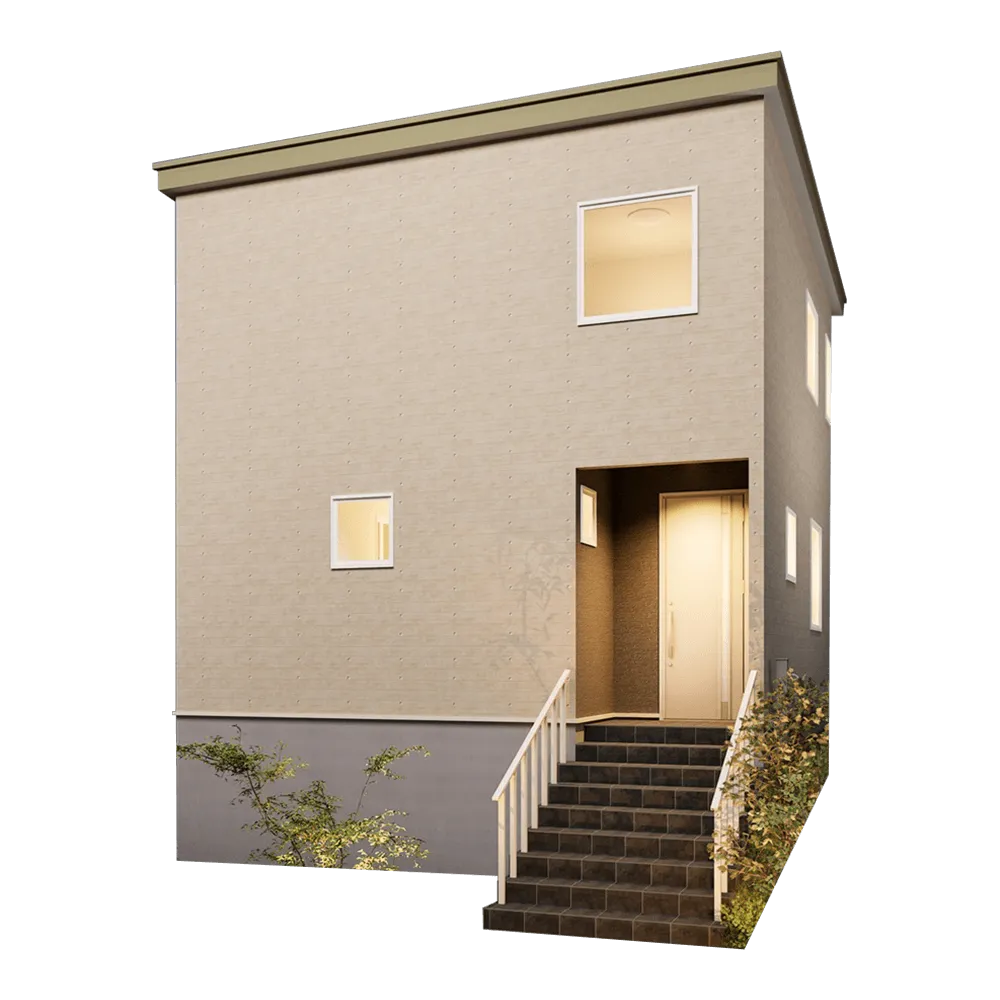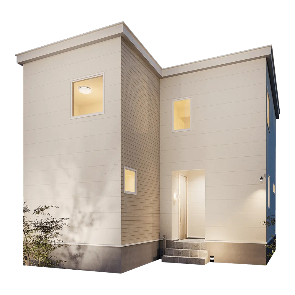 外壁は清潔感のあるホワイトで統一し、無駄のないシンプルな窓配置がスタイリッシュな印象に。シンプルでありながらも周囲に映えるデザインで、家族の誇りとなる佇まいを実現しています。