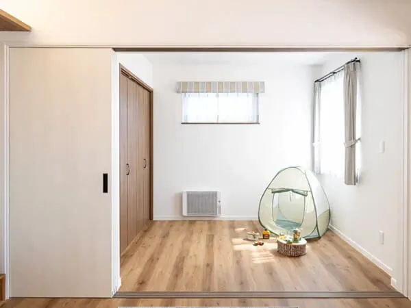 リビング横の続き間は、暮らしに合わせて使える便利な一室。小さなお子さまの遊び場として見守りながら使える他、ご両親の滞在スペースなどに活躍します。