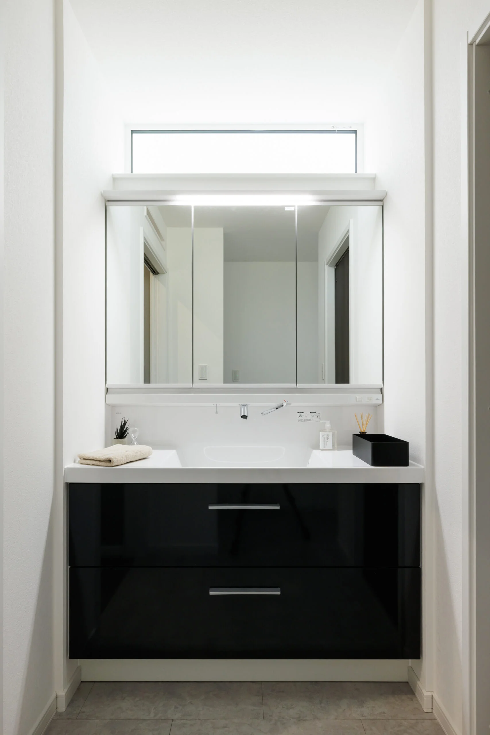 ■独立洗面台はゆったり使える幅120cmサイズ、つなぎ目がなく手入れも簡単