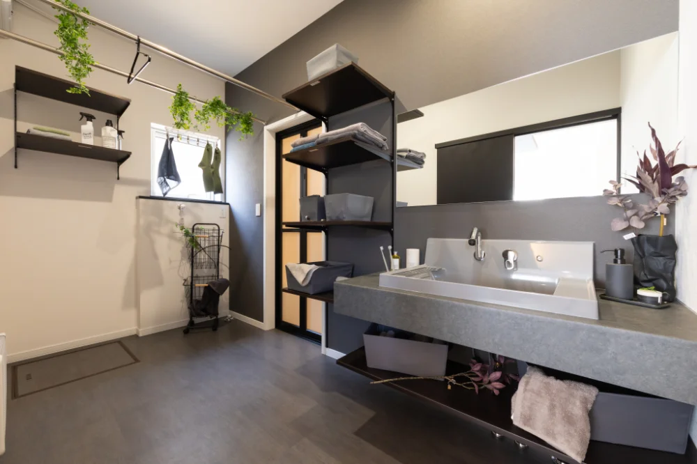 ■W1200の造作風洗面台にグレーボウルを採用した洗練デザイン