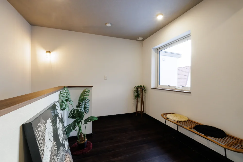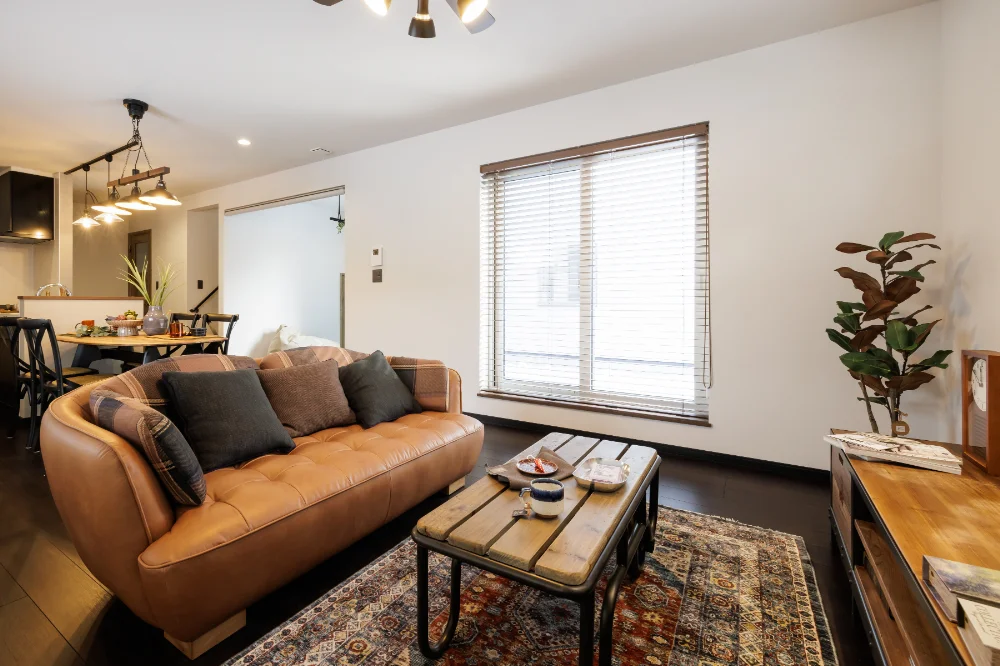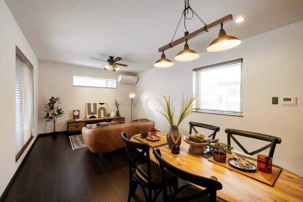 ■黒×木目の内装と、二面採光で明るさを確保した心地よいリビング