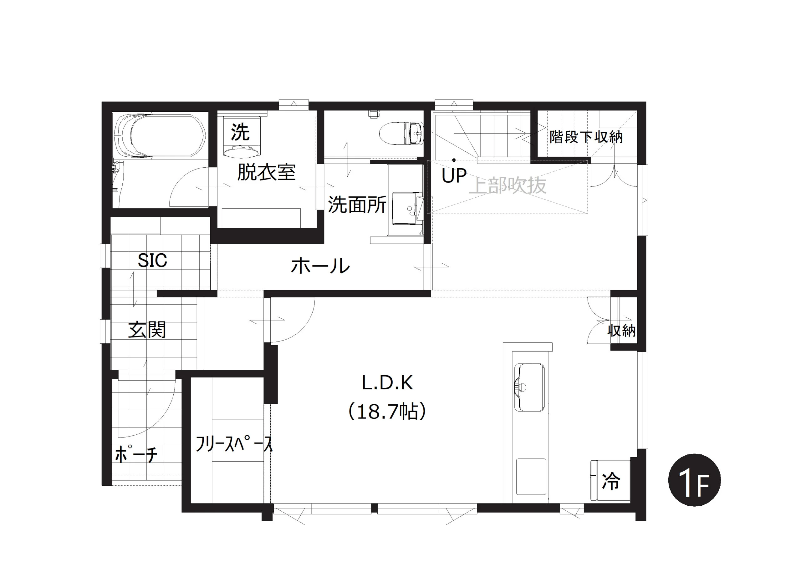 ■回遊動線・パッシブ全館空調・洗面脱衣別・ランドリースペース・小上がりヌック・部分吹き抜けによって開放感と快適性を実現
