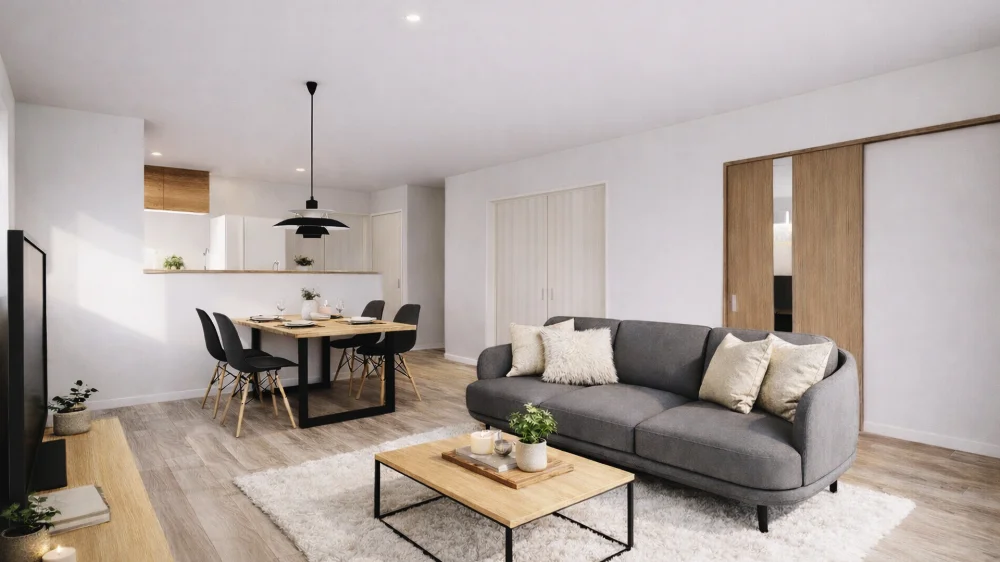 ■ホワイト×オークブラウンでまとめた、やさしく落ち着きのある内装