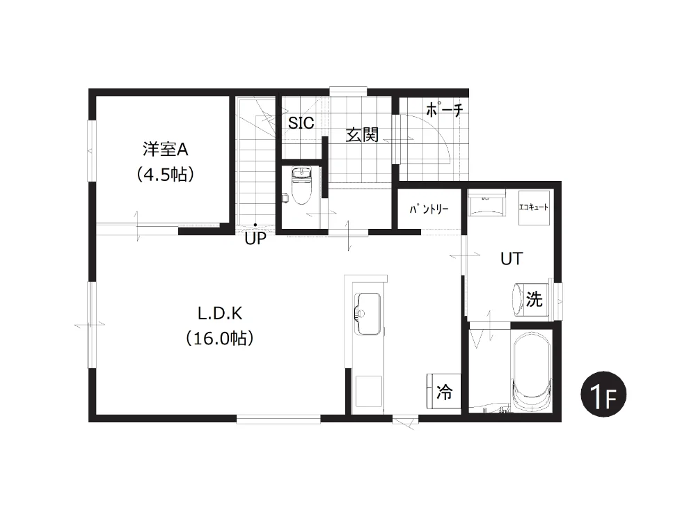 ■16帖LDK横に4.5帖洋室を配置し、使い勝手の良い間取り