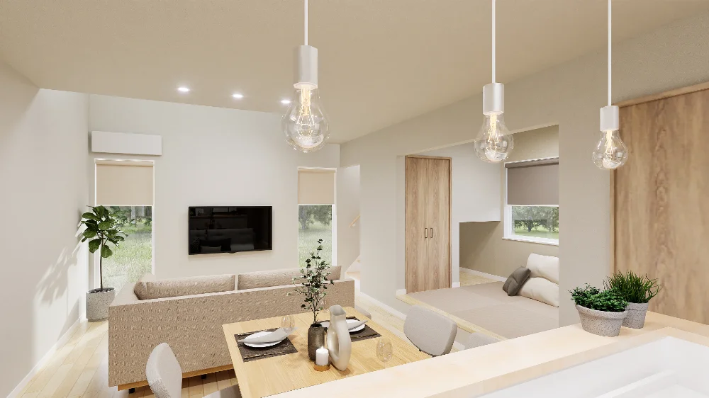 ■LDKと空間をゆるやかに区切る小上がりタタミは、趣味やお昼寝スペースとして活用できます。