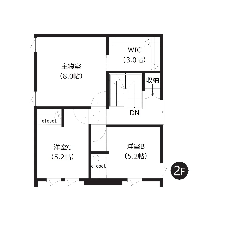 ■主寝室は北側に配置し、広々とした8帖の空間を確保。ウォークインクローゼット付き。