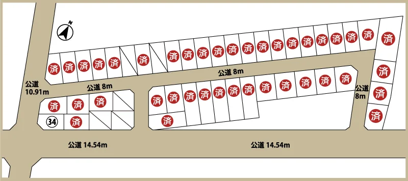 | 備考 | 1~24号地、第二種中高層住居専用地域/25号地、第二種中高層住宅専用地域・準工業地域/26号地、準工業地域 /2023年7月末に造成完了 |
