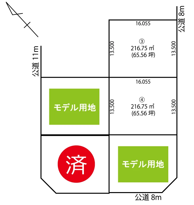 | 道路 | 北東側 8m公道/南東側 8m公道/南西側 8m公道 |