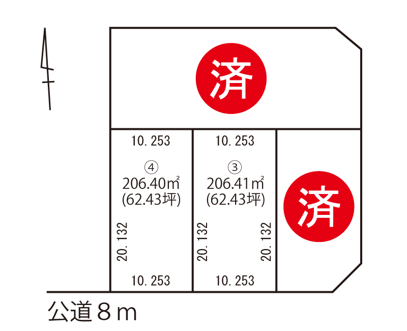| 区画面積 | 206.40㎡~206.41㎡ |