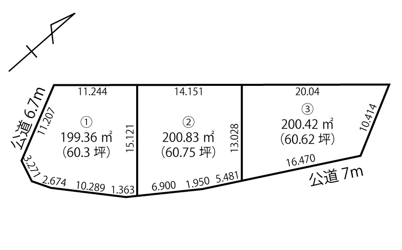 | 道路 | 南東側7m公道/南西側6.7m公道 |