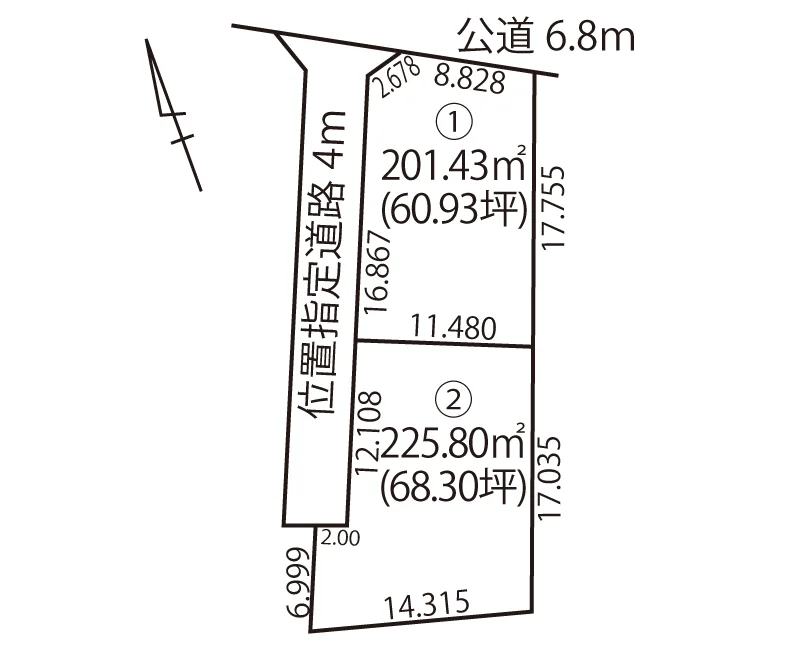 | 道路 | 北西側4m位置指定/北側6.8m公道 |
