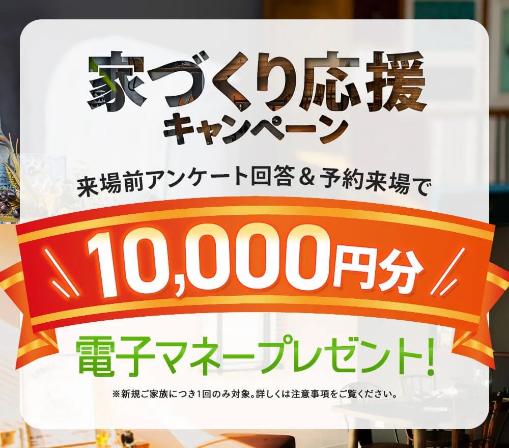 ◆ ご見学日の前日までに「ご来場前アンケート」に回答、ご見学で10,000円分の電子マネーのプレゼントの対象になります。