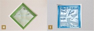 H. I. 子ども部屋の壁に、長男は青、次男は緑のガラスブロックをワンポイントとして使用。