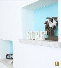 F.ニッチにも水色を採用し、マリブの世界観に統一しました。