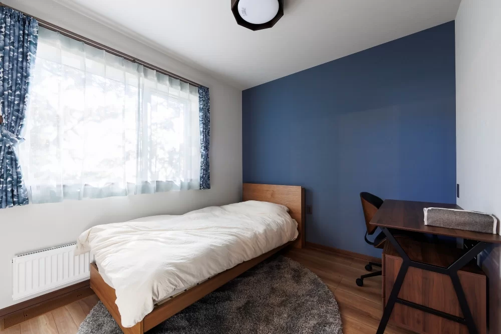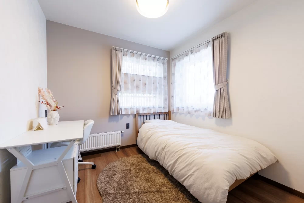 段差を設けた小上がり仕様が、主寝室に落ち着きを与えるデザイン。ウォークインクローゼットはたっぷりの収納力で、暮らしに整然とした美しさをプラス。心からくつろげる主寝室です。