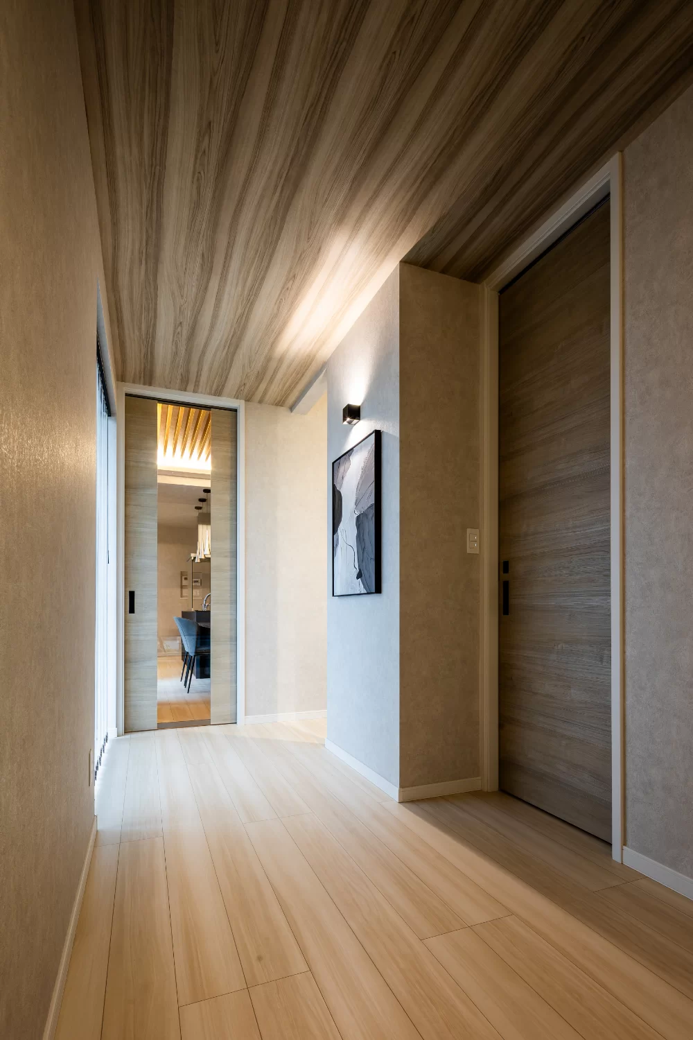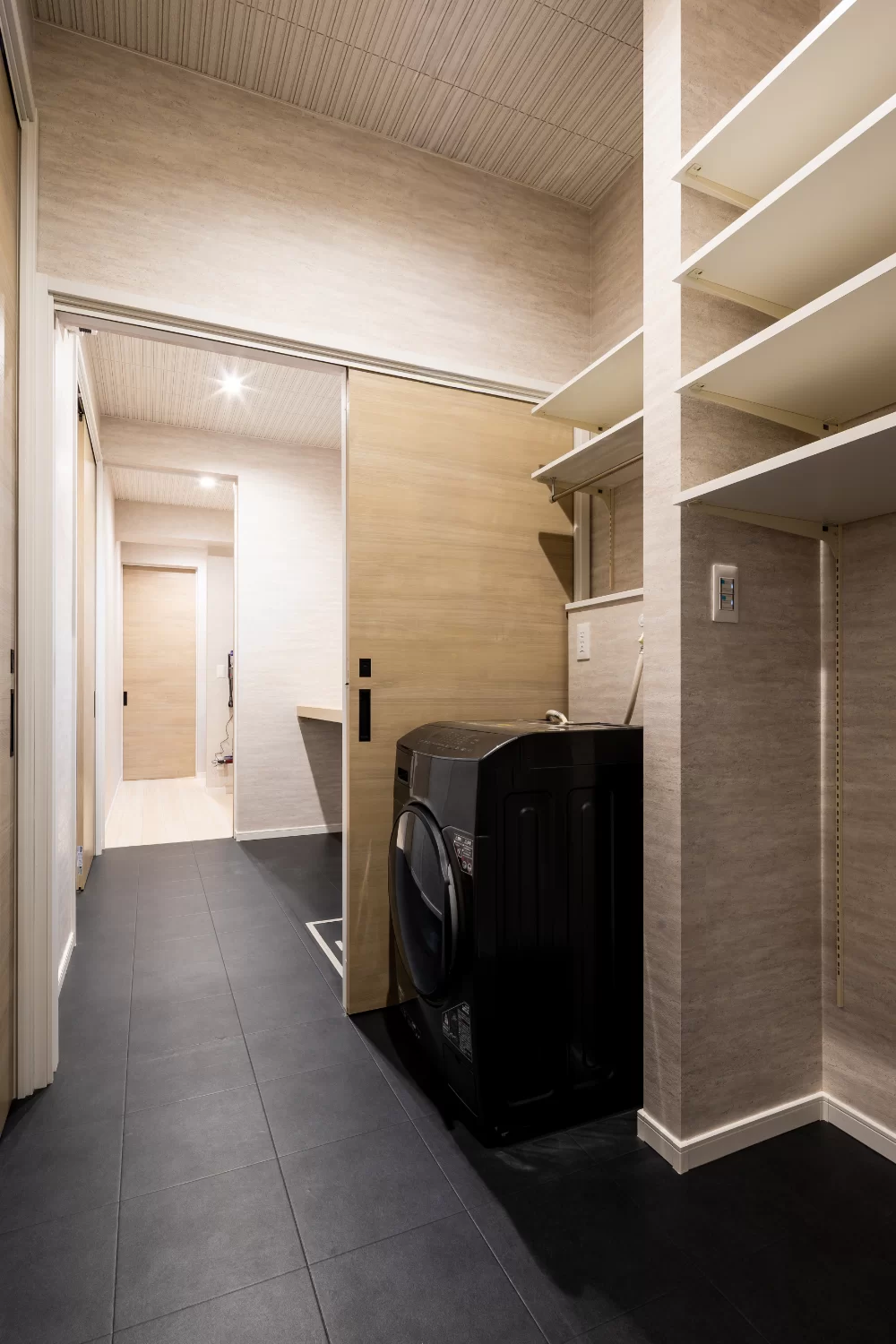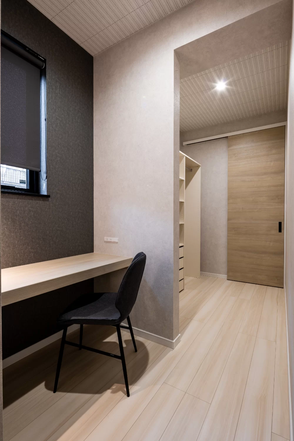 寝室からは書斎、ウォークインクローゼット、ユーティリティへと続くスムーズな動線を確保し、朝の身支度から家事までストレスなく行える設計です。