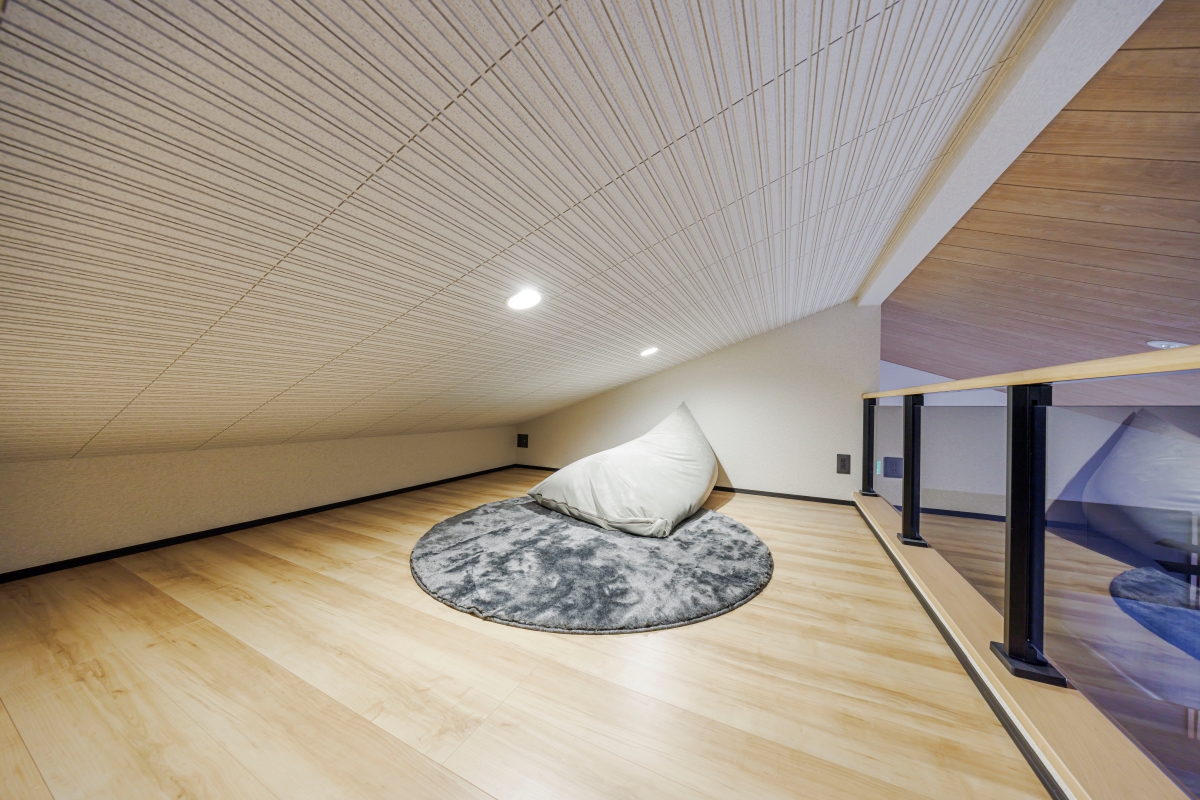 リビングとつながる屋根裏空間を活用したロフトスペースも楽しいポイント。家族の存在を感じながら秘密基地のように過ごせます。子どもの遊び場や収納、趣味スペースなど、将来的にライフステージが変化しても自由にアレンジ可能です。