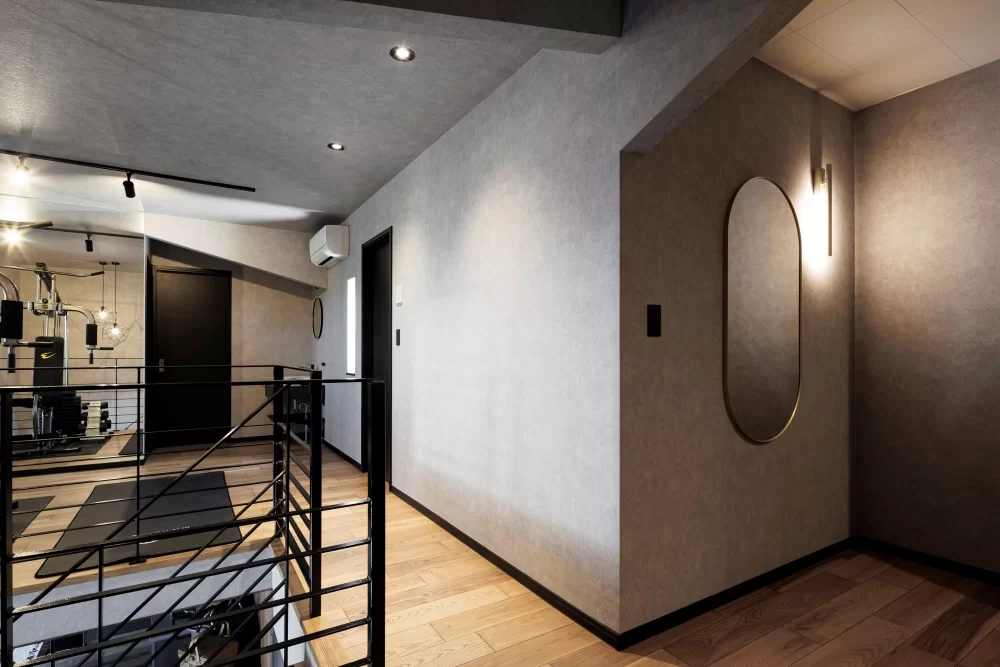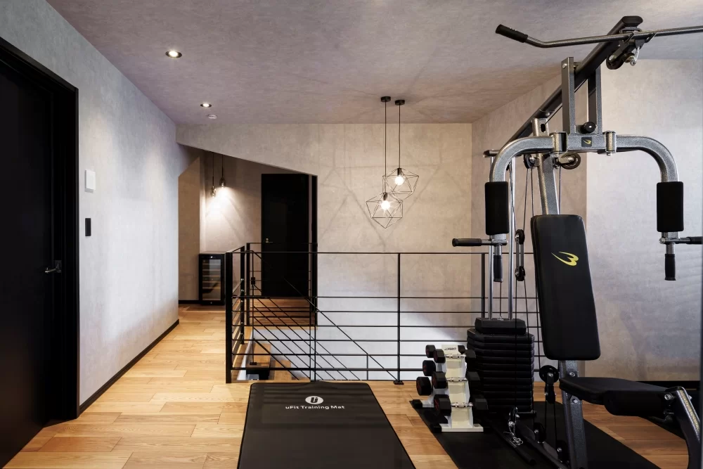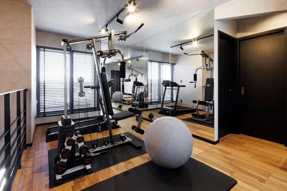 2階のホールには全面鏡張りのフィットネススペースを設置。家族で体を動かしたり、お子様とダンスの練習を楽しんだりと充実した時間を過ごせます。